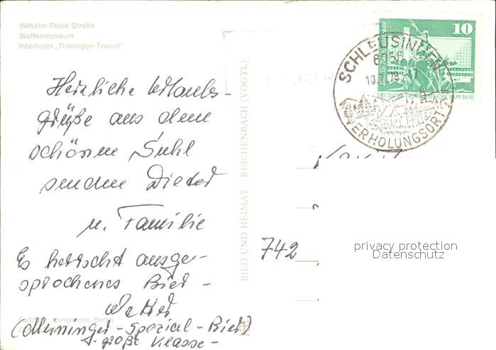 72132300 alte Postkarte Suhl Thueringer Wald Waffenmuseum Interhotel Thueringen Tourist postalisch gelaufen Erhaltung siehe scans KatCode: 11110016054000