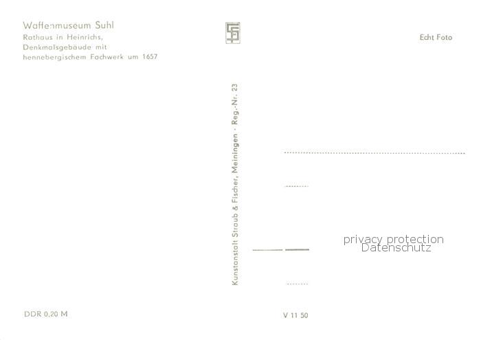 73751060 Suhl Thueringer Wald Waffenmuseum Rathaus in Heinrichs Denkmalsgebaeude mit hennebergischem Fachwerk um 1657 postalisch nicht gelaufen Erhaltung siehe scans [WerneD78] KatCode: 11110016054000