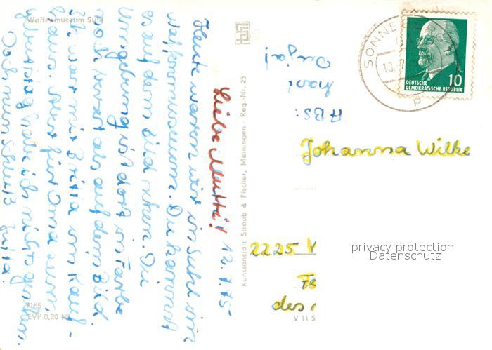 73102607 alte Postkarte Suhl Thueringer Wald Waffenmuseum Wasserfontaene postalisch gelaufen Erhaltung siehe scans [KathaD81] KatCode: 11110016054000