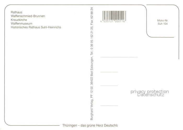 73209150 Suhl Thueringer Wald Waffenschmied-Brunnen Kreuzkirche Rathaus Suhl-Heinrichs postalisch nicht gelaufen Erhaltung siehe scans [NatalD47] KatCode: 11110016054000