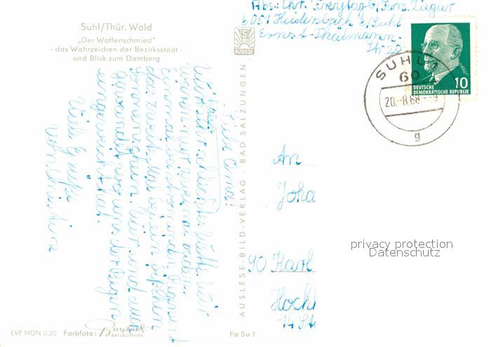 72774998 alte Postkarte Suhl Thueringer Wald Waffenschmied Domberg postalisch gelaufen Erhaltung siehe scans [NatalD47] KatCode: 11110016054000