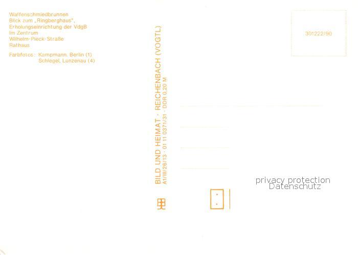 73061747 Suhl Thueringer Wald Waffenschmiedbrunnen Ringberghaus Erholungseinrichtung der VdgB Wilhelm Pieck Strasse Rathaus postalisch nicht gelaufen Erhaltung siehe scans [FriedD77] KatCode: 11110016054000
