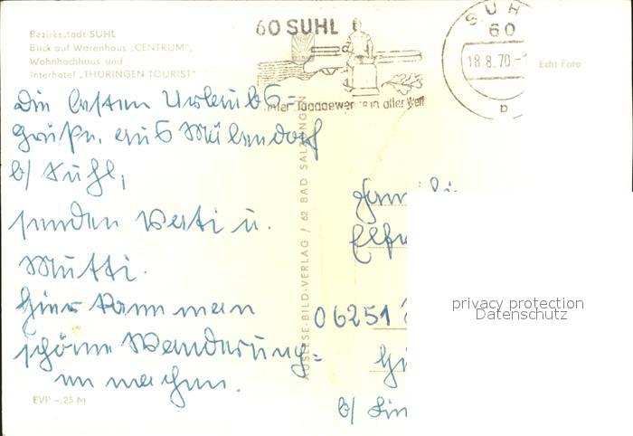 72075165 alte Postkarte Suhl Thueringer Wald Warenhaus Centrum Interhotel Thueringen Tourist postalisch gelaufen Erhaltung siehe scans KatCode: 11110016054000