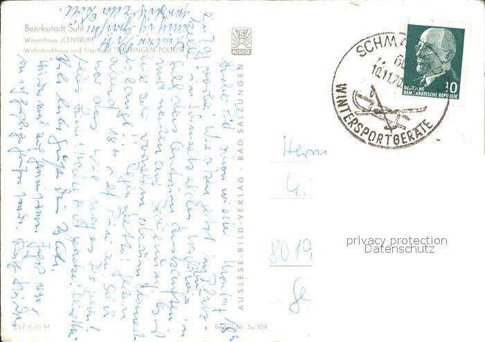 72458771 alte Postkarte Suhl Thueringer Wald Warenhaus Centrum Wohnhochhaus Interhotel Thueringen Tourist postalisch gelaufen Erhaltung siehe scans KatCode: 11110016054000