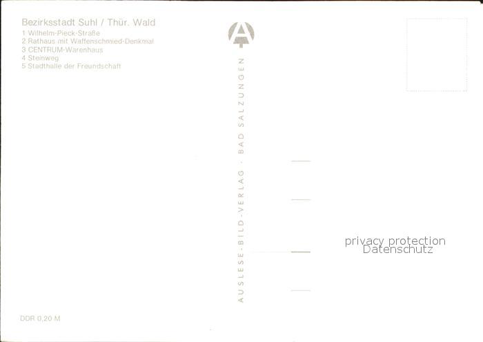 72547525 Suhl Thueringer Wald Wilh Pieck Str Rathaus mit Waffenschmied Denkmal Centrum Warenhaus Steinweg Stadthalle postalisch nicht gelaufen Erhaltung siehe scans [WerneD78 kv017box] KatCode: 11110016054000