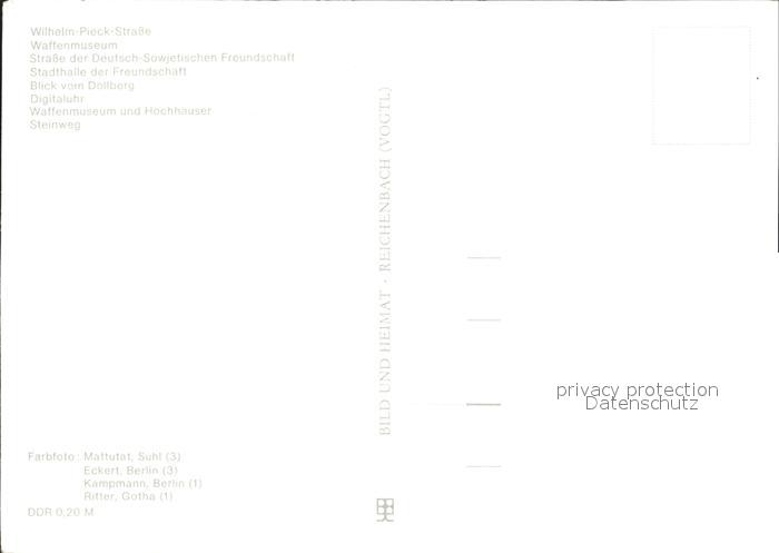 72137271 Suhl Thueringer Wald Wilhelm Pieck Str Waffenmuseum Strasse der DSF Stadthalle Doellberg Digitaluhr Hochhaeuser Steinweg postalisch nicht gelaufen Erhaltung siehe scans KatCode: 11110016054000