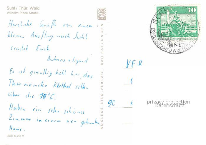 72683481 alte Postkarte Suhl Thueringer Wald Wilhelm Pieck Strasse postalisch gelaufen Erhaltung siehe scans [LiesaD40] KatCode: 11110016054000