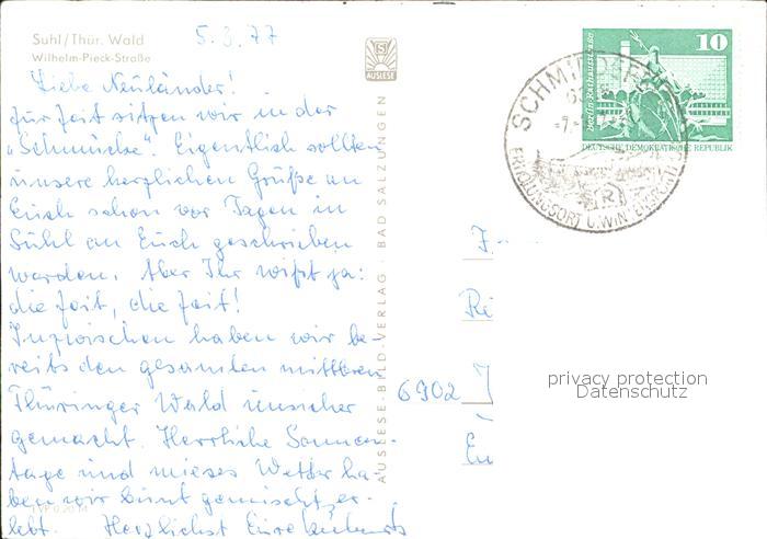 72062279 alte Postkarte Suhl Thueringer Wald Wilhelm Pieck Strasse postalisch gelaufen Erhaltung siehe scans KatCode: 11110016054000