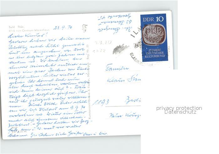 72038532 alte Postkarte Suhl Thueringer Wald Zentrum- Warenhaus postalisch gelaufen Erhaltung siehe scans KatCode: 11110016054000