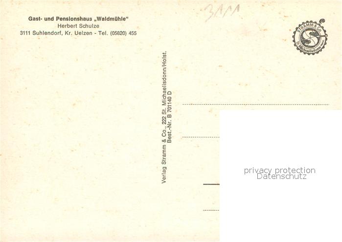 73642277 Suhlendorf Gast und Pensionshaus Waldmuehle postalisch nicht gelaufen Erhaltung siehe scans [WerneD78] KatCode: 11110003360024