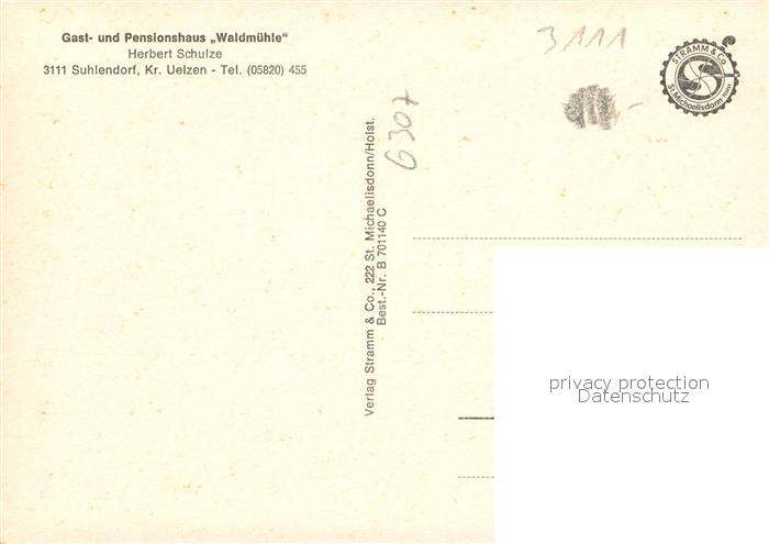 73642260 Suhlendorf Gast und Pensionshaus Waldmuehle Kanal Kegelbahn postalisch nicht gelaufen Erhaltung siehe scans [WerneD78] KatCode: 11110003360024