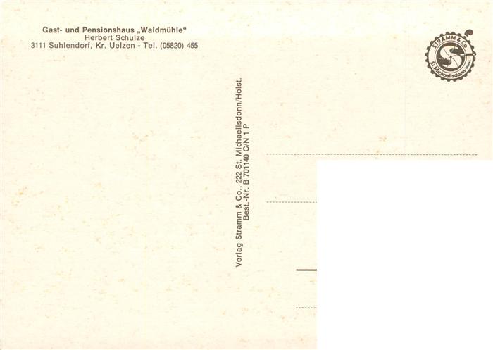73907434 Suhlendorf Gast und Pensionshaus Waldmuehle Kanal Kegelbahn postalisch nicht gelaufen Erhaltung siehe scans [WerneD78] KatCode: 11110003360024