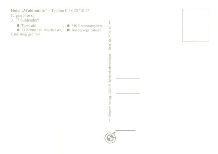 73907433 Suhlendorf Hotel Restaurant Turmcafe Waldmuehle Gastmuehle postalisch nicht gelaufen Erhaltung siehe scans [WerneD78] KatCode: 11110003360024