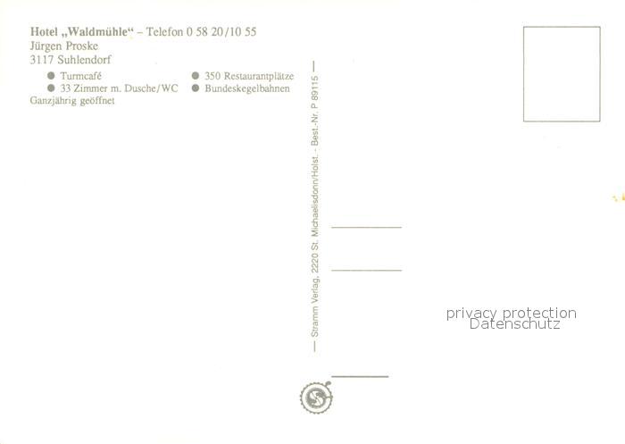 73716173 Suhlendorf Hotel Restaurant Turmcafe Waldmuehle Gaststube Gaestezimmer postalisch nicht gelaufen Erhaltung siehe scans [WerneD78] KatCode: 11110003360024
