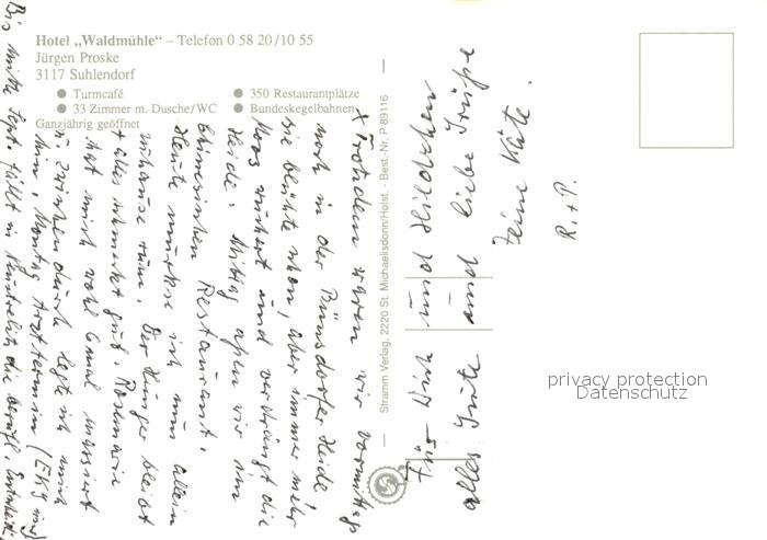 73123226 Suhlendorf Hotel Waldmuehle bei Nacht postalisch nicht gelaufen Erhaltung siehe scans [LiesaD40] KatCode: 11110003360024