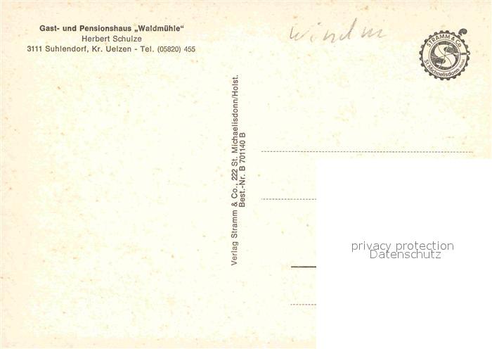 72784753 Suhlendorf Restaurant Pension Waldmuehle postalisch nicht gelaufen Erhaltung siehe scans [LiesaD40] KatCode: 11110003360024