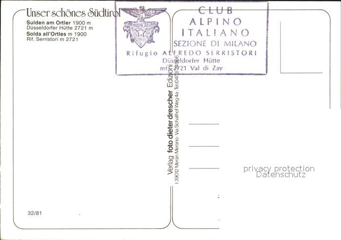 Sulden Solda Duesseldorfer Huette postalisch nicht gelaufen Erhaltung siehe scans [AndreD76]