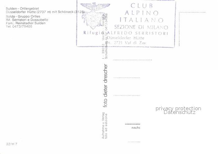Sulden Solda Duesseldorfer Huette mit Schoeneck postalisch nicht gelaufen Erhaltung siehe scans [WerneD78]