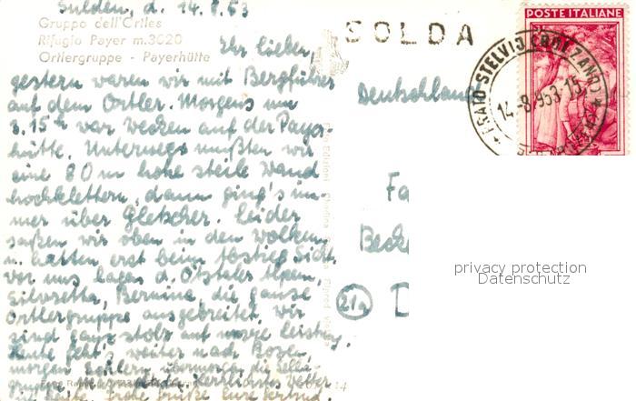 old postcard Sulden Solda Ortlergruppe Payerhuette postalisch gelaufen Erhaltung siehe scans [WerneD78]