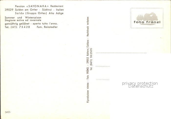Sulden Solda Pension Sayonara Restaurant postalisch nicht gelaufen Erhaltung siehe scans