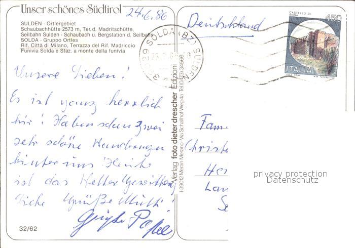 old postcard Sulden Solda Schaubachhuette Seilbahn postalisch gelaufen Erhaltung siehe scans