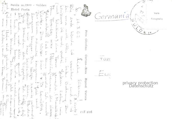74008190 old postcard Sulden Solda Trentino-Alto-Adige IT Hotel Posta postalisch gelaufen Erhaltung siehe scans [FriedD77] KatCode: 11240000000000