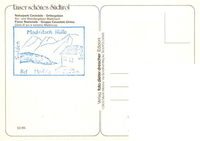 73907783 Sulden Solda Trentino-Alto-Adige IT Naturpark Cevedale Ortlergbiet Ski- und Wandergebiet Madritsch Bergrestaurant Sonnenterrasse Bergsee postalisch nicht gelaufen Erhaltung siehe scans [FriedD77] KatCode: 11240000000000