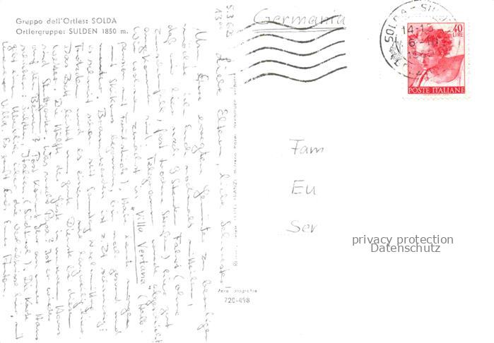 74010151 old postcard Sulden Solda Trentino-Alto-Adige IT Ortlergruppe postalisch gelaufen Erhaltung siehe scans [WerneD78] KatCode: 11240000000000