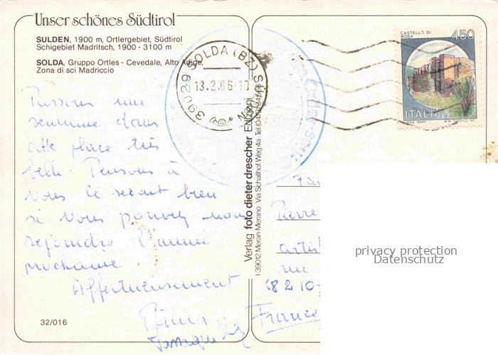 74043231 old postcard Sulden Solda Trentino-Alto-Adige IT Ortlergruppe Skilift postalisch gelaufen Erhaltung siehe scans [WerneD78] KatCode: 11240000000000