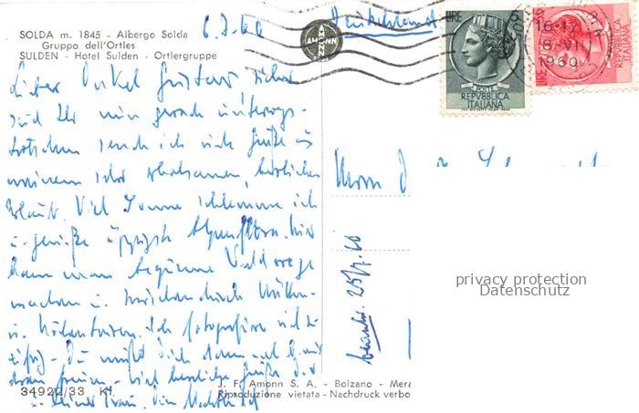 74153679 old postcard Sulden Solda Vinschgau Ortler Bolzano Trentino-Alto-Adige IT Hotel Sulden mit Ortlergruppe postalisch gelaufen Erhaltung siehe scans [WerneD78] KatCode: 11240000000000
