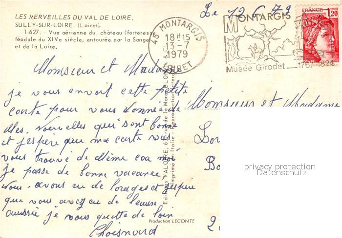 13588307 Sully-sur-Loire Vue aerienne du chateau entouree par la Sange et de la Loire postalisch gelaufen Erhaltung siehe scans [WerneD78] carte postale Wern Katcode 11170045245315