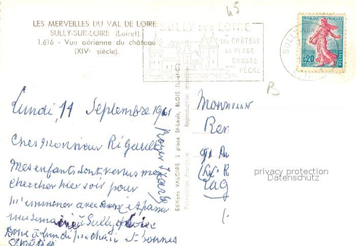 13536084 carte postale Sully-sur-Loire Vue aérienne du Chateau XIVe siècle Wasserschloss postalisch gelaufen Erhaltung siehe scans [FriedD77] KatCode: 11170045245315