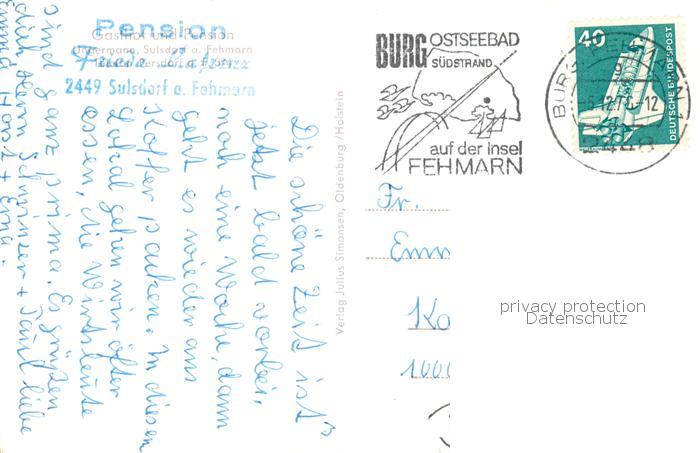 73830094 alte Postkarte Sulsdorf Fehmarn Gasthof Pension Ungermann postalisch gelaufen Erhaltung siehe scans [FriedD77] KatCode: 11110001055046