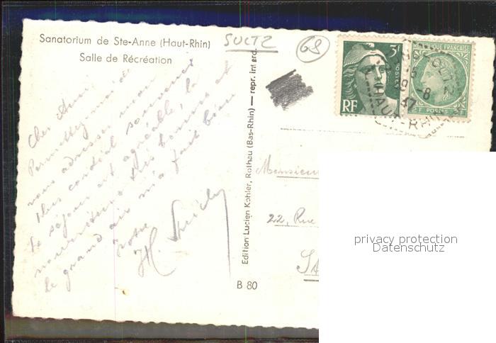 11917786 carte postale Sulz Elsass Sanatorium de Sainte Anne Salle de Recreation postalisch gelaufen Erhaltung siehe scans KatCode: 11170068368315