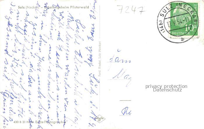 74096864 alte Postkarte Sulz Neckar Erholungsheim Pfisterwald postalisch gelaufen Erhaltung siehe scans [FriedD77] KatCode: 11110008325057