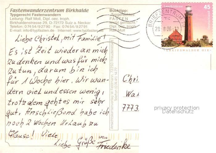73321272 alte Postkarte Sulz Neckar Fastenwanderzentrum Birkhalde Schwarzwald Hallenbad Saefe Obstkorb Wandern postalisch gelaufen Erhaltung siehe scans [FriedD77] KatCode: 11110008325057