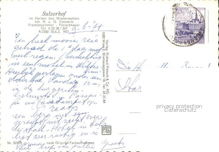 72425179 alte Postkarte Sulz Weinviertel Hotel Restaurant Sulzerhof postalisch gelaufen Erhaltung siehe scans KatCode: 11390125030857