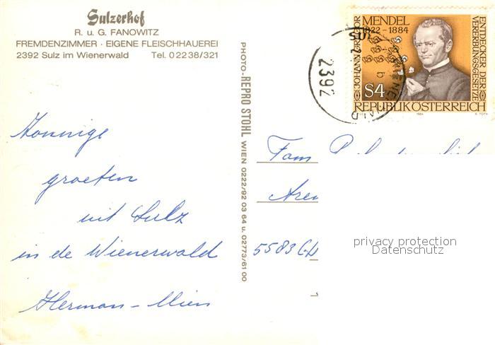 72930011 alte Postkarte Sulz Weinviertel Sulzerhof Terrasse postalisch gelaufen Erhaltung siehe scans [WerneD78] KatCode: 11390125030857