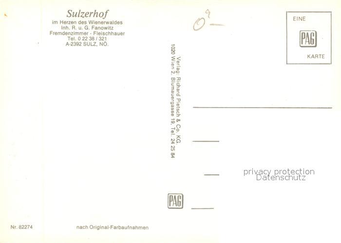 73320427 Sulz Wienerwald Gasthof Restaurant Sulzerhof postalisch nicht gelaufen Erhaltung siehe scans [FriedD77] KatCode: 11390127031726