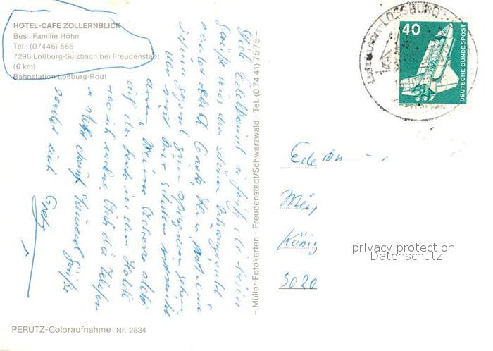 73130188 alte Postkarte Sulzbach Lossburg Hotel-Cafe Zollernblick postalisch gelaufen Erhaltung siehe scans [PaolaD17] KatCode: 11110008237045