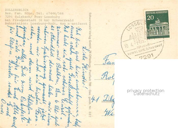 73723608 alte Postkarte Sulzbach Lossburg Hotel Restaurant Zollernblick postalisch gelaufen Erhaltung siehe scans [FriedD77] KatCode: 11110008237045