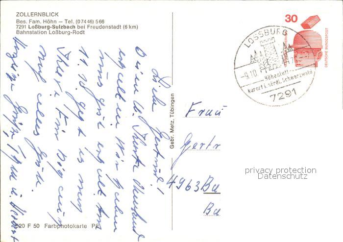 72277224 alte Postkarte Sulzbach Lossburg Zollernblick postalisch gelaufen Erhaltung siehe scans KatCode: 11110008237045