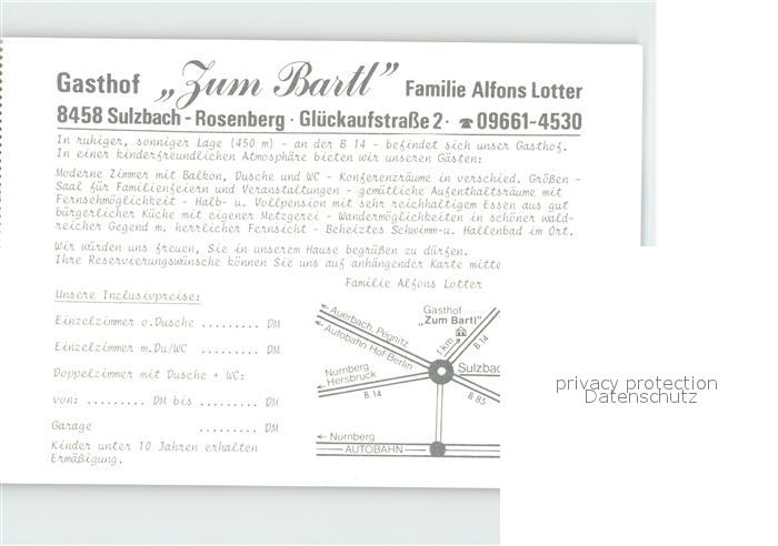 72182805 Sulzbach-Rosenberg Gasthof Zum Bartl postalisch nicht gelaufen Werbekarte (keine Postkarte) Erhaltung siehe scans KatCode: 11110009371151