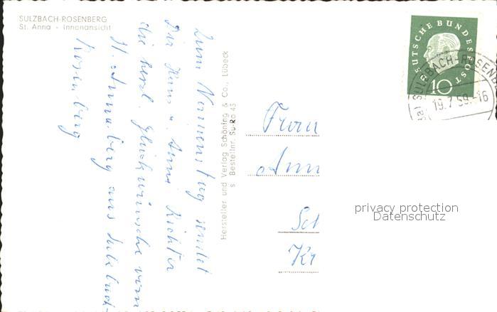 72365015 alte Postkarte Sulzbach-Rosenberg St Anna Innenansicht postalisch gelaufen Erhaltung siehe scans KatCode: 11110009371151