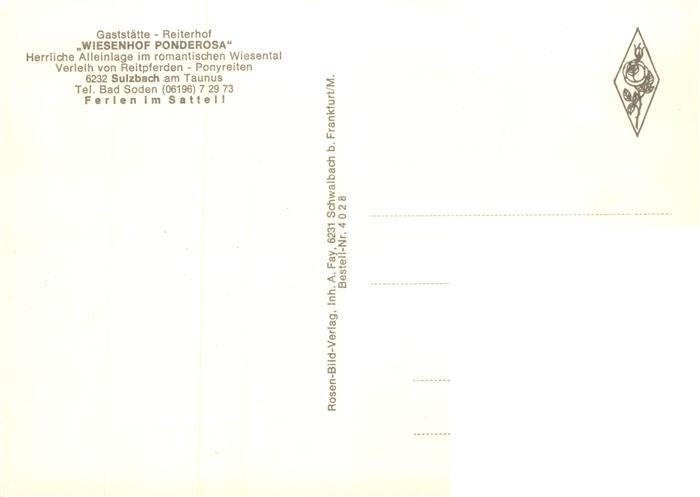 73907403 Sulzbach Taunus Gaststaette Reiterhof Wiesenhof Ponderosa Terrasse Ausritte postalisch nicht gelaufen Erhaltung siehe scans [WerneD78] KatCode: 11110006436012