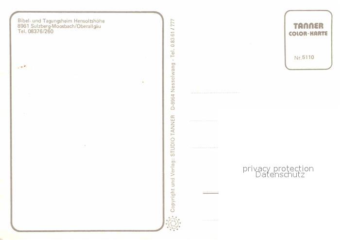 72888070 Sulzberg Allgaeu Bibel- und Tagungsheim Hensholtshoehe postalisch nicht gelaufen Erhaltung siehe scans [AndreD76] KatCode: 11110009780140