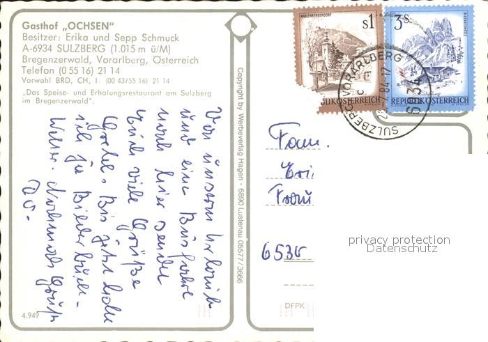 72447717 alte Postkarte Sulzberg Allgaeu Gasthof Ochsen postalisch gelaufen Erhaltung siehe scans KatCode: 11110009780140