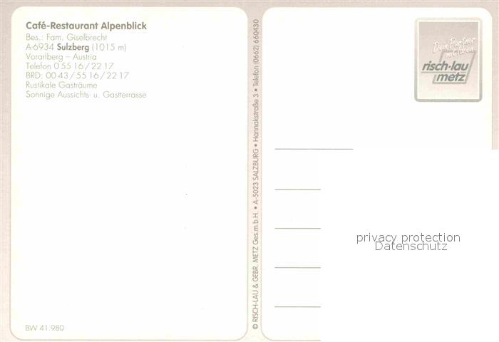 72760503 Sulzberg Vorarlberg Cafe Restaurant Alpenblick postalisch nicht gelaufen Erhaltung siehe scans [LiesaD40] KatCode: 11390342080238