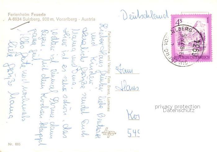 12983725 alte Postkarte Sulzberg Vorarlberg Ferienheim Feuerle postalisch gelaufen Erhaltung siehe scans [AndreD76] KatCode: 11390342080238