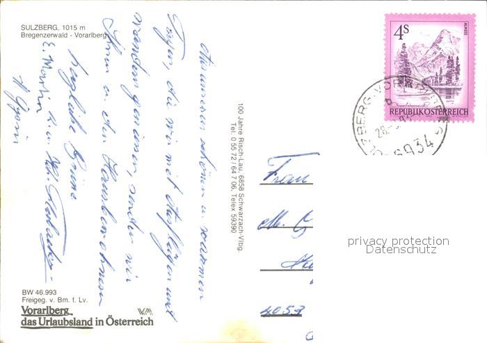 72511913 alte Postkarte Sulzberg Vorarlberg Fliegeraufnahme Bregenzerwald postalisch gelaufen Erhaltung siehe scans KatCode: 11390342080238